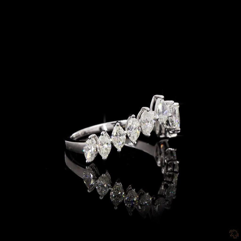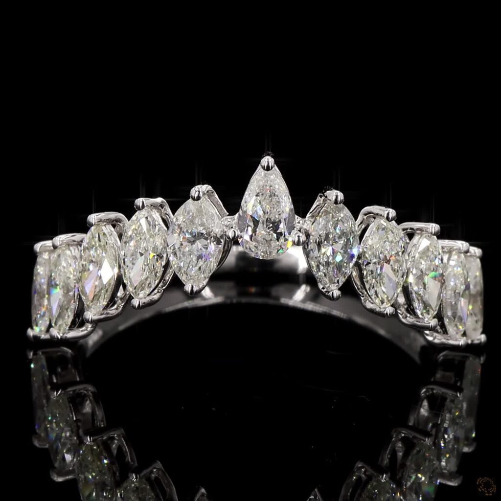 A graceful crown-inspired band of marquise diamonds, sculpted to shimmer with regal brilliance.