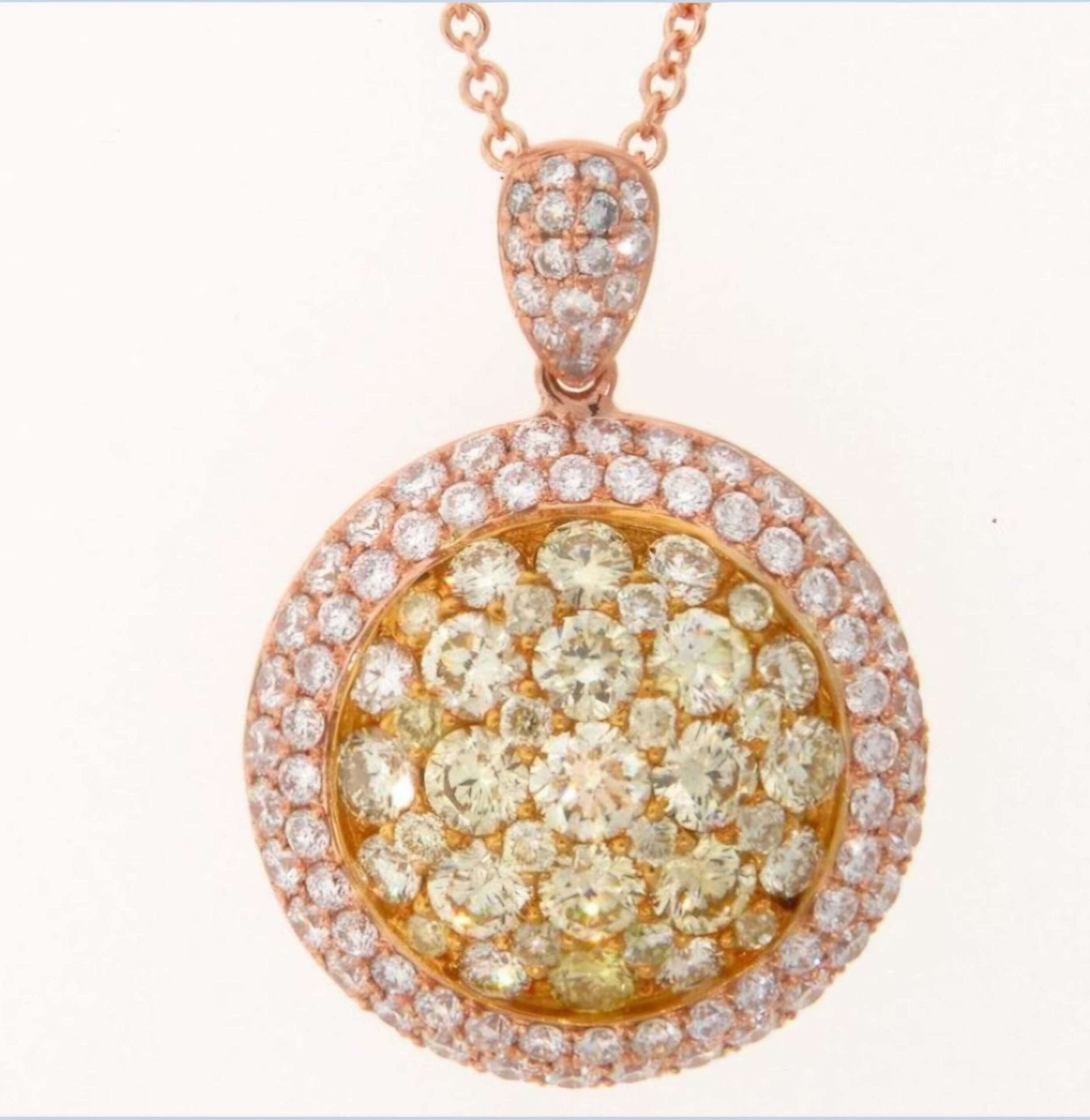The Aurielle Radiance Pendant is a celebration of light captured in its most graceful form. At its heart lies a mesmerizing cluster of champagne-toned diamonds, arranged to reflect a soft, golden glow—reminiscent of sunlight distilled into brilliance.