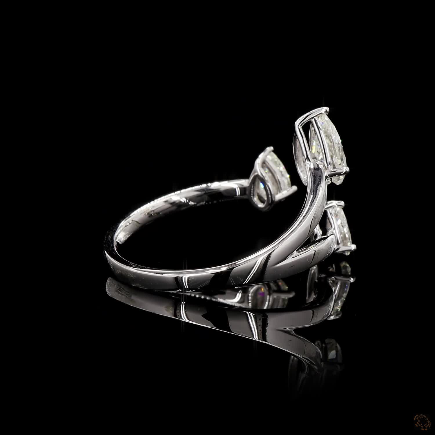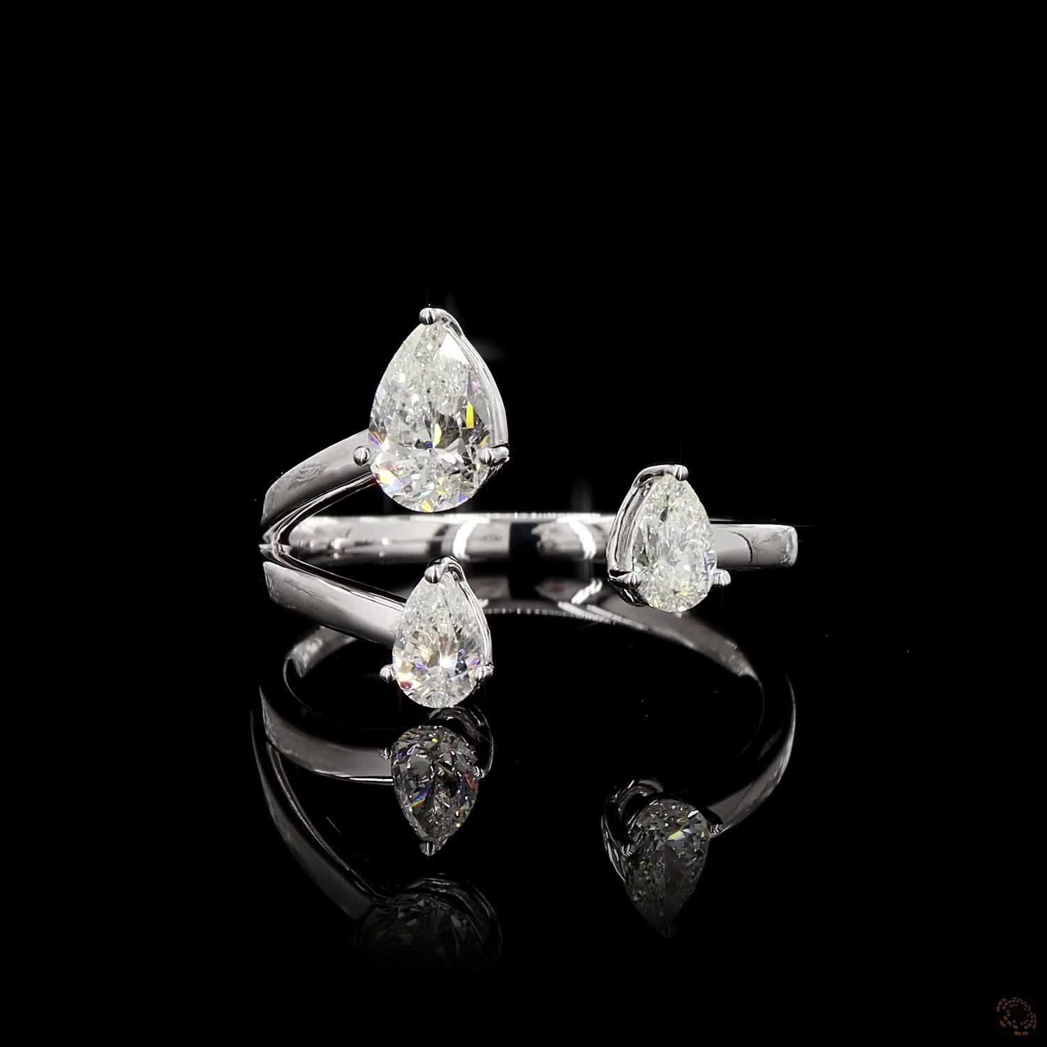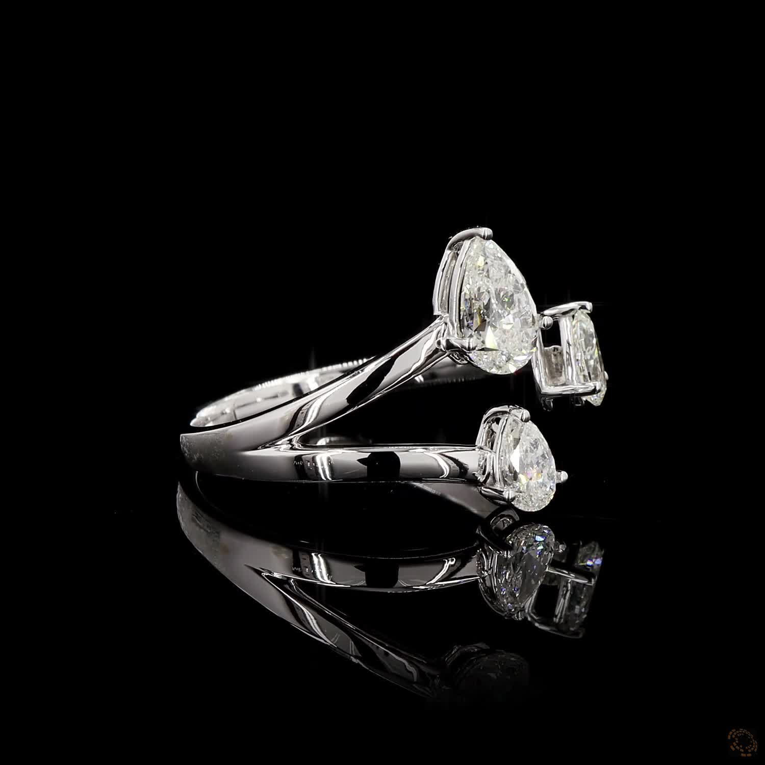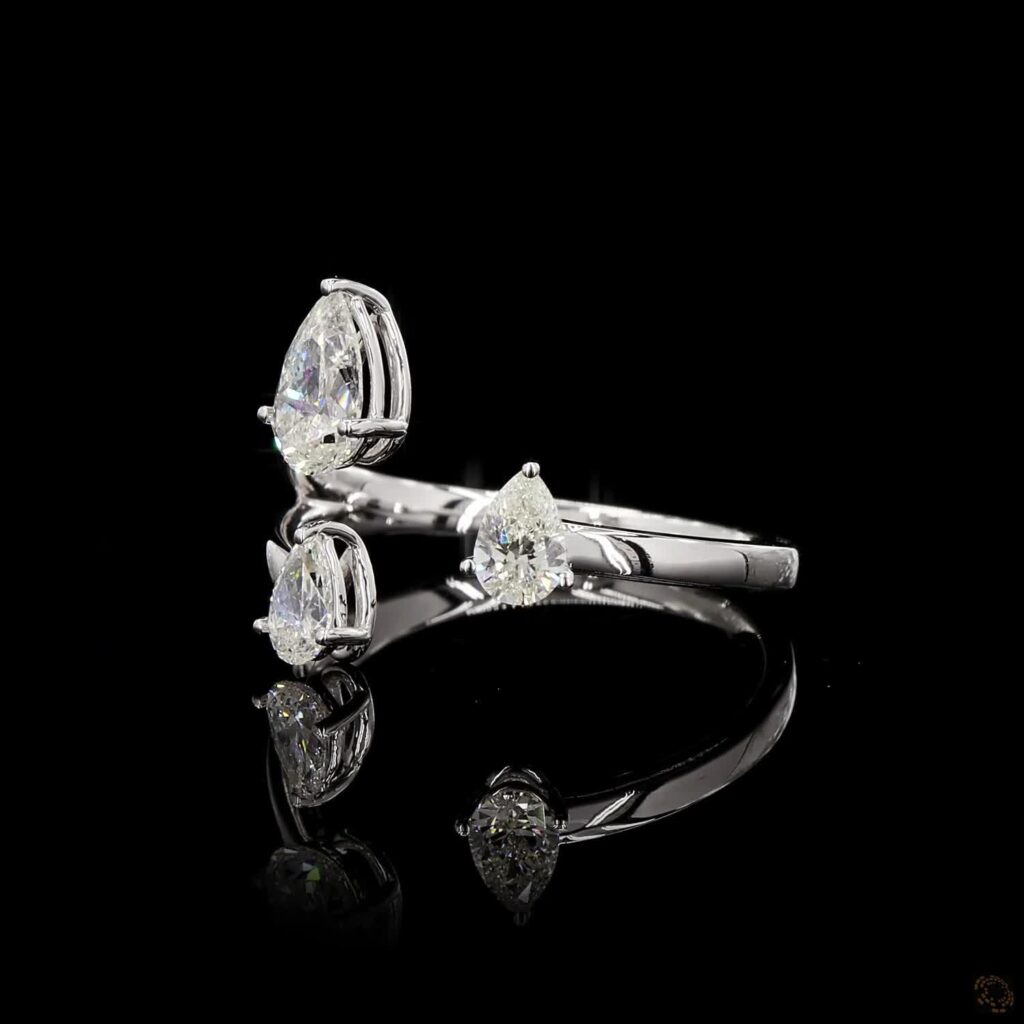 The Trivelle Pear Wrap Ring is a refined expression of contemporary elegance. Designed with a graceful open-wrap silhouette, this piece features three luminous pear-cut diamonds that appear to float effortlessly along the band. Each stone is positioned to catch light from every angle, creating a captivating play of brilliance and sparkle.