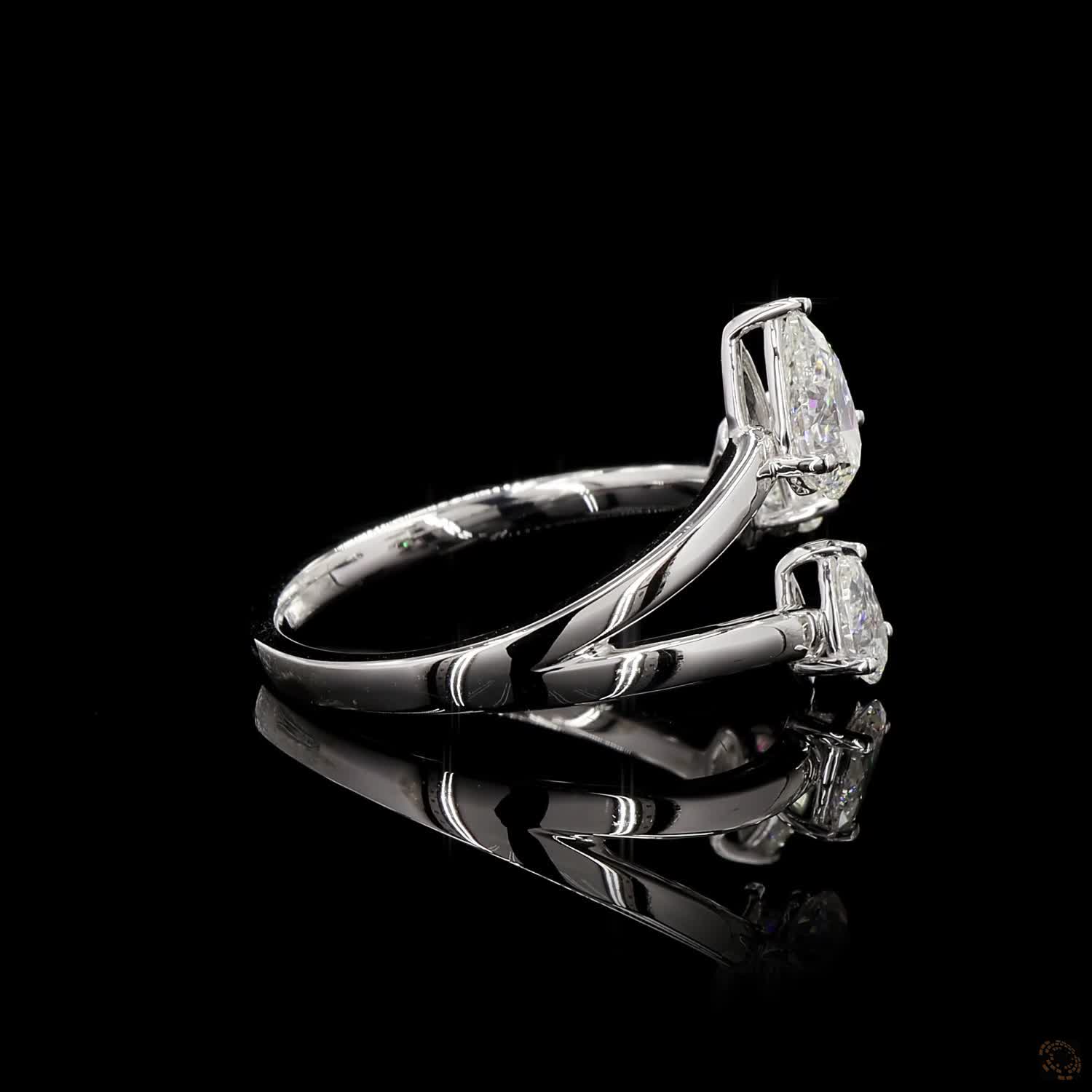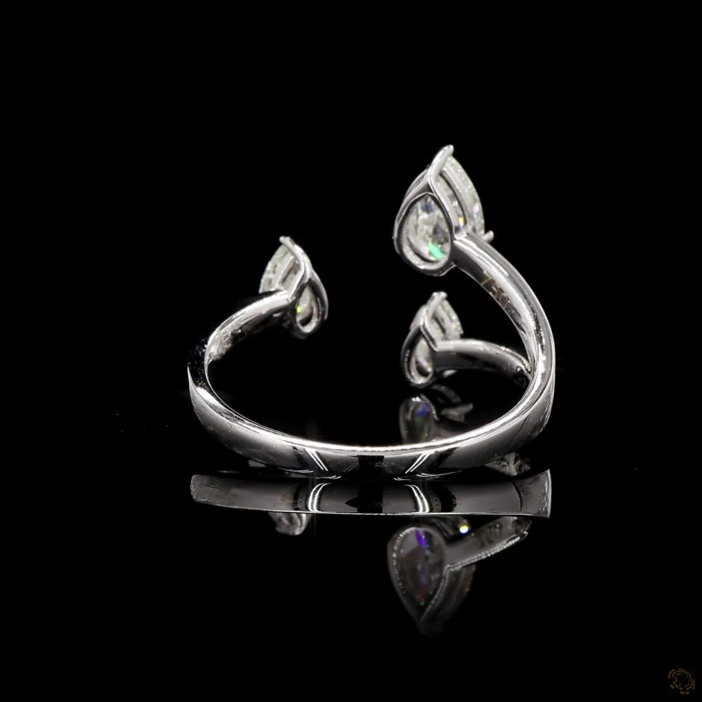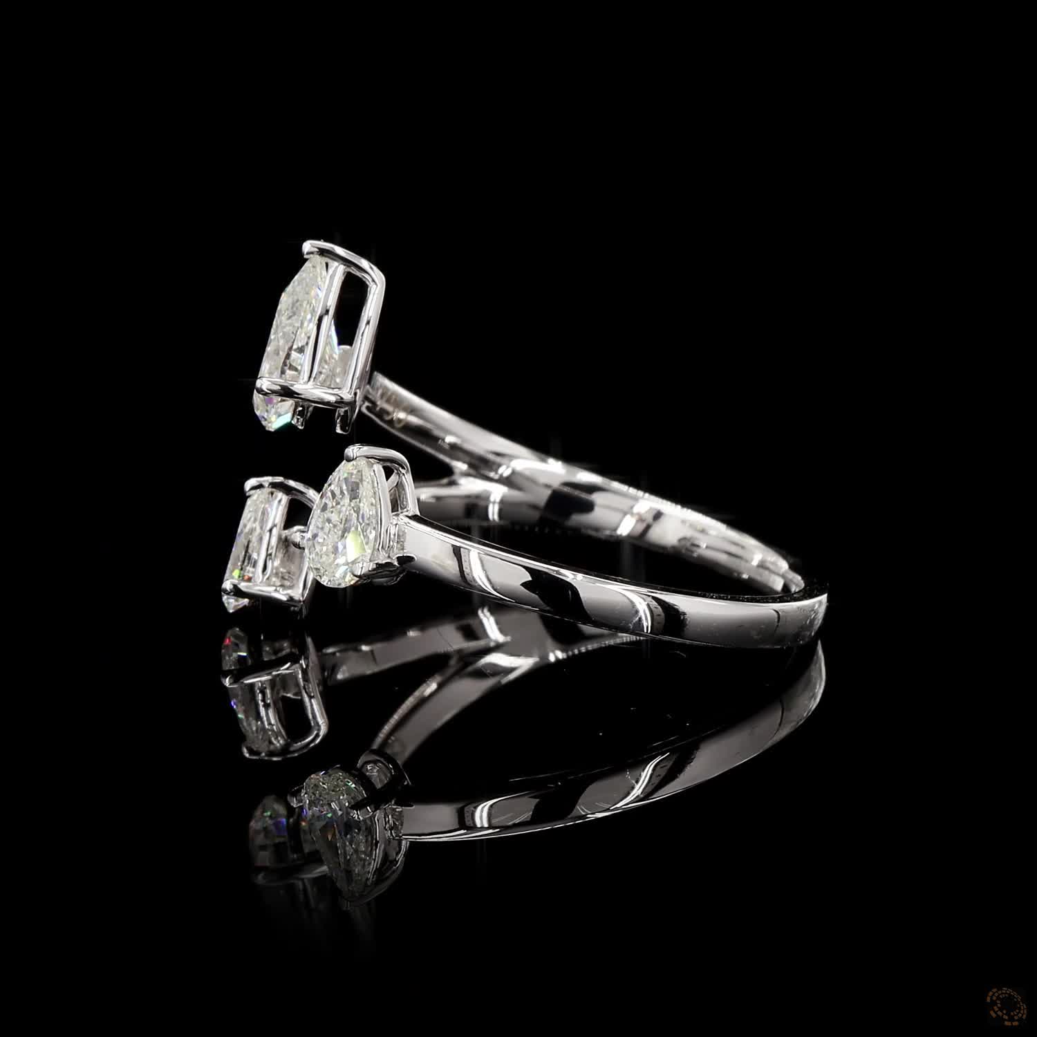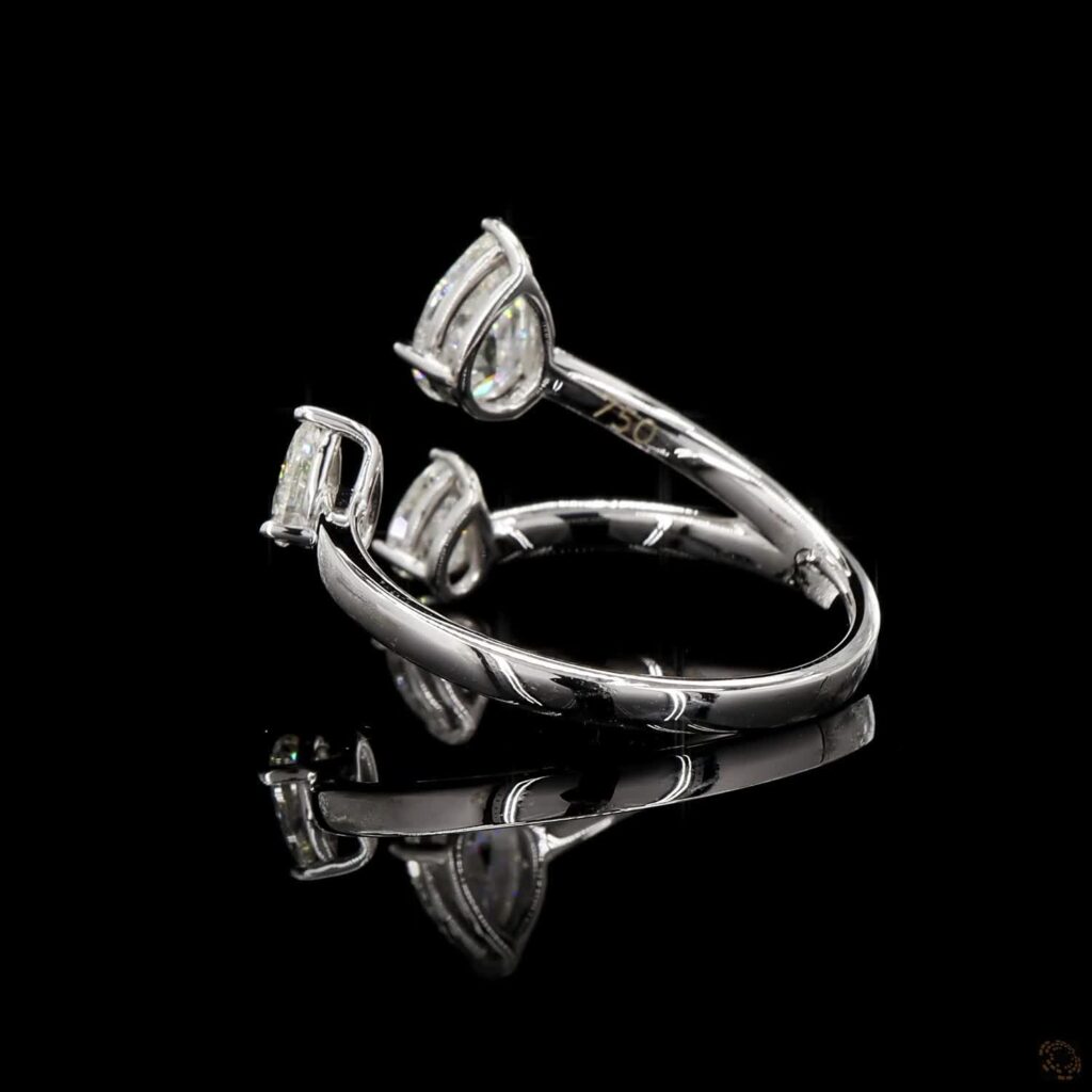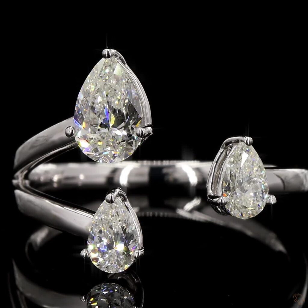 The Trivelle Pear Wrap Ring is a refined expression of contemporary elegance. Designed with a graceful open-wrap silhouette, this piece features three luminous pear-cut diamonds that appear to float effortlessly along the band. Each stone is positioned to catch light from every angle, creating a captivating play of brilliance and sparkle.