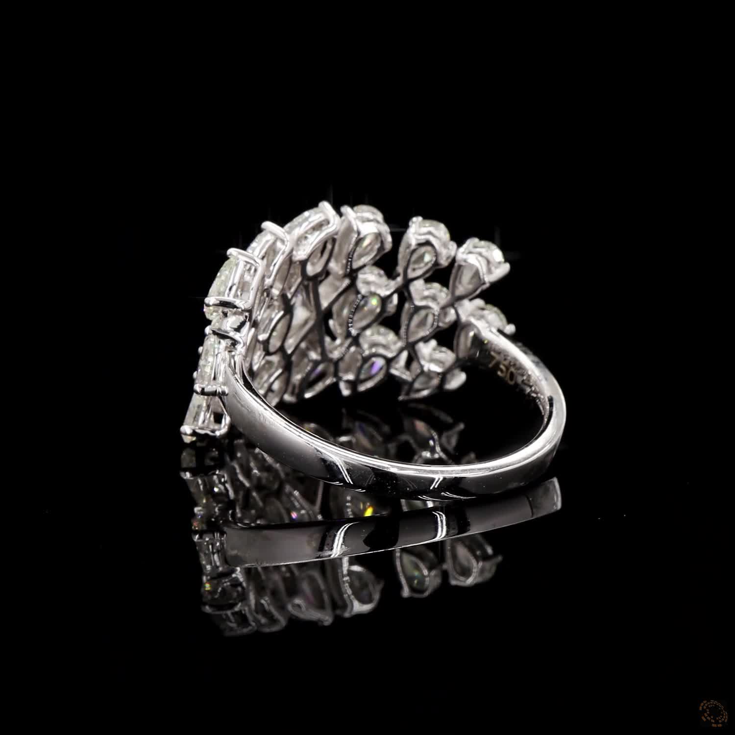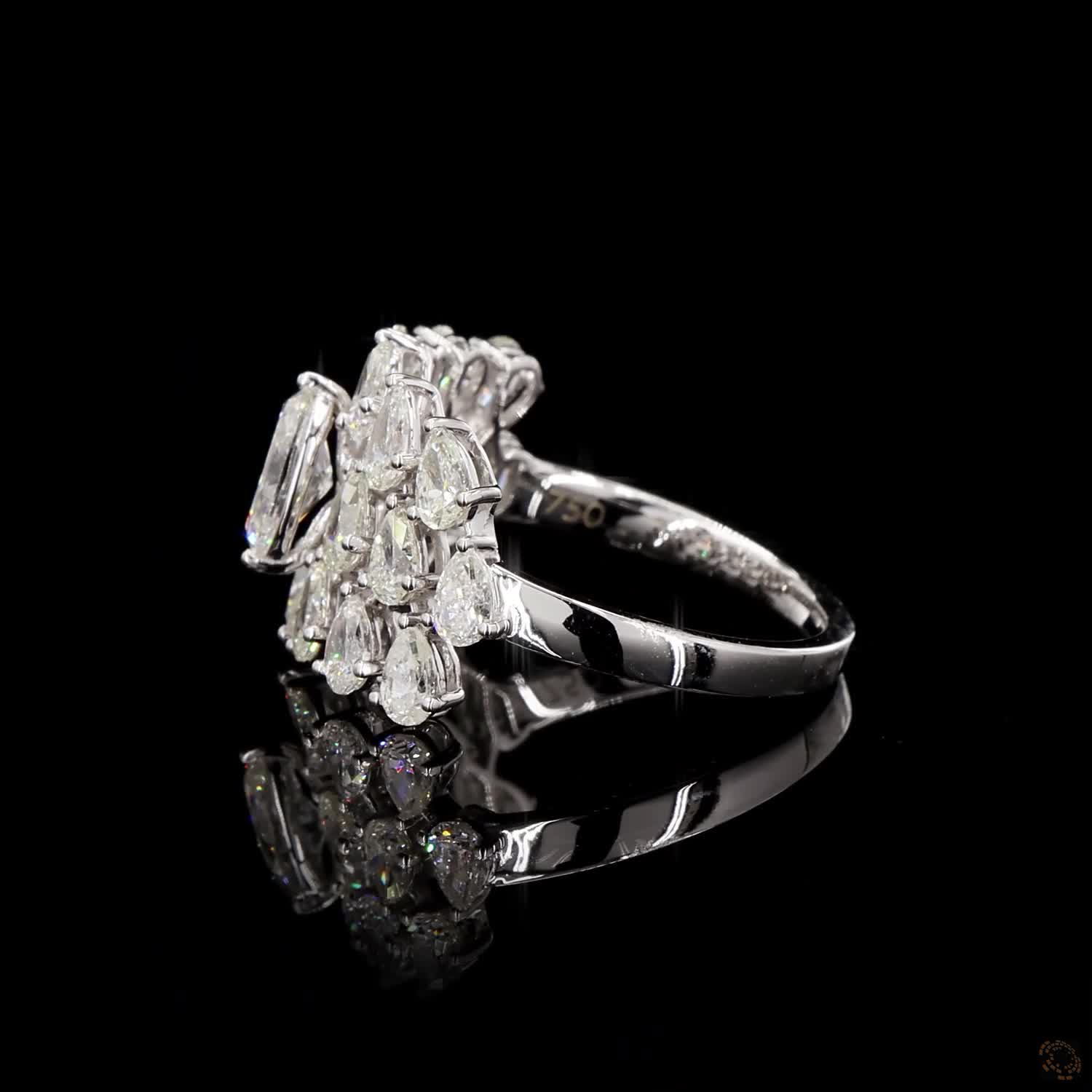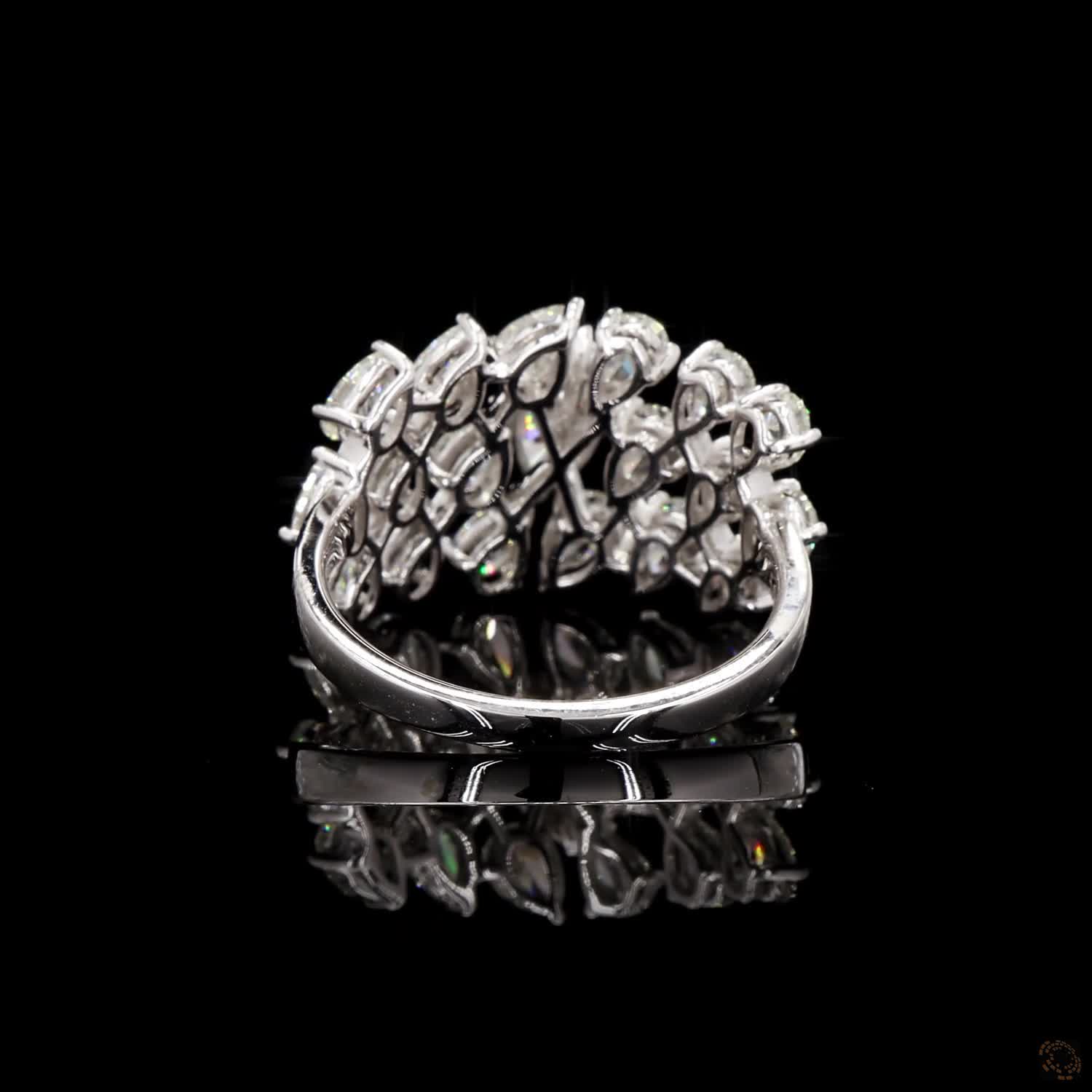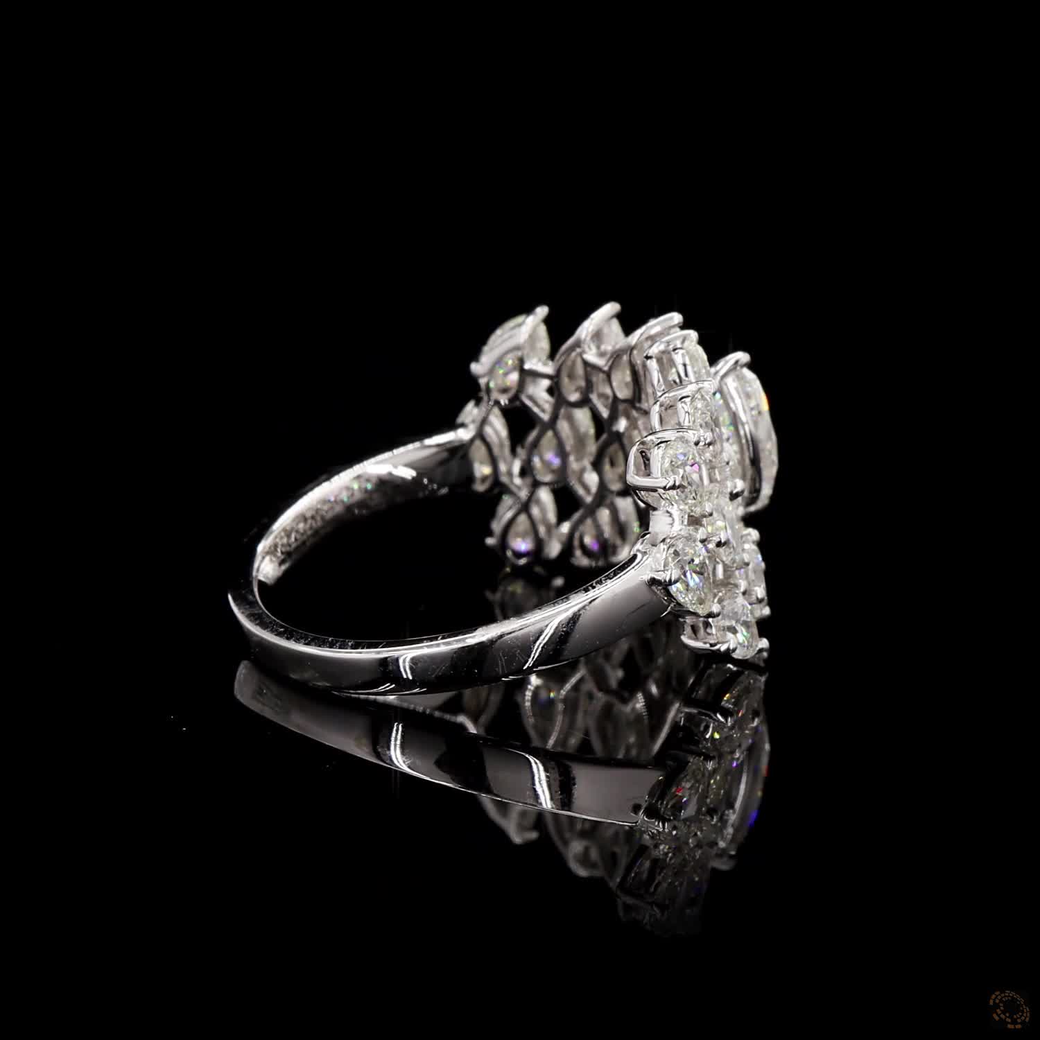 The Veliora Bloom Band is a celebration of brilliance and form, crafted with layers of meticulously set pear-cut diamonds that come together in a captivating floral composition. Each diamond is positioned to reflect light from every angle, creating a continuous shimmer that feels both luxurious and alive. The wide band design gives it a bold, statement presence, while the delicate petal-like arrangement softens it with elegance and grace. Perfect for those who desire a piece that blends grandeur with artistry, this ring is a true expression of modern high jewellery—where every detail blooms with light.