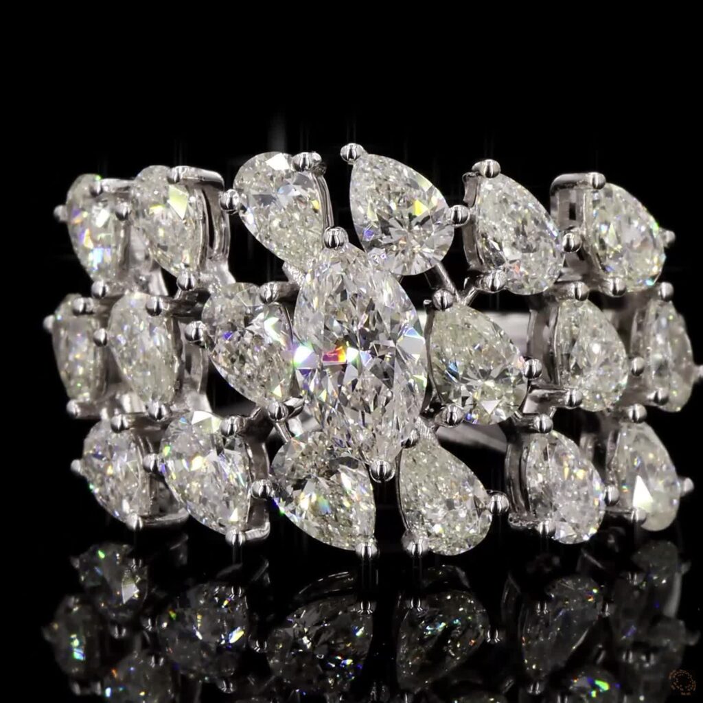 A radiant multi-row band of pear-cut diamonds arranged in a blooming floral symphony.